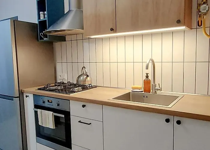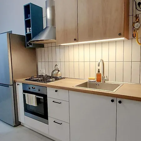 Για την εξυπηρέτησή σας, το διαμέρισμα διαθέτει εξοπλισμένη μικρή κουζίνα με παροχές καφέ και τσαγιού, ψυγείο, μαγειρικά σκεύη. Η πλησιέστερη στάση λεωφορείων είναι Mytna sqr, η οποία βρίσκεται σε απόσταση 5 λεπτών με τα πόδια απο το κατάλυμα.